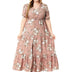 Women Plus Size Holiday Floral Short Sleeve Loose V Neck Dress