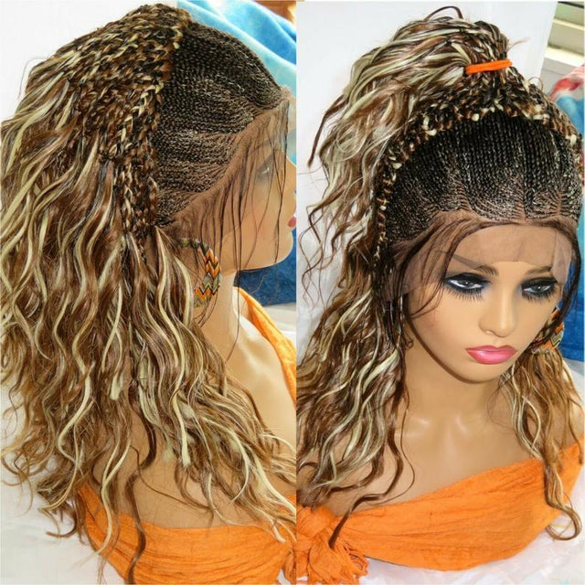 Braided Lace Wig 13" by 4" Lace closure Feed in Cornrows Handmade Ghana Weaving