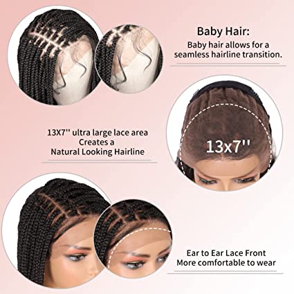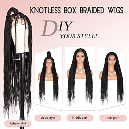 【Ultra Large Lace Area Natural Parting】Knotless box braided wigs with ultra large lace area allow you to separate the braids naturally, making it easy to create any look you want, such as high ponytail, updo bun, middle part, side part and so on. The super realistic look creates the illusion that you spend hours braiding your hair and walk out of the salon! Natural edges and beautiful baby hair for a seamless hairline transition. Buyers will trim baby hair and excess lace.