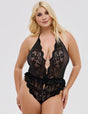 Women Plus Size Black Floral Lace Plunge Bodysuit