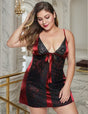 Women Plus Size Black Lace Panel Satin Babydoll - Red and Black / XS-S(110-140lbs) is backordered and will ship as soon as it is back in stock.