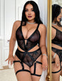 Women Plus Size Black Sheer Cutout Mesh Teddy