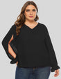Women Plus Size Black V-Neck Split Sleeve Chiffon Blouse