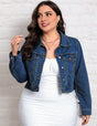 Women Plus Size Classic Blue Cropped Denim Jacket