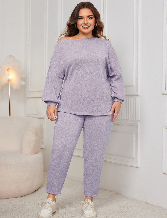 Women Plus Size Drop Shoulder Casual Sweatshirt and Pants Set - Lavender / 1XL is backordered and will ship as soon as it is back in stock.
