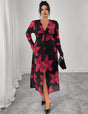 Women Plus Size Floral Print Twist Front V-Neck Maxi Dress - Black (Red) / 1XL is backordered and will ship as soon as it is back in stock.