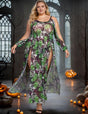 🎃Turn every night into a bold Halloween fantasy with the Women Plus Size Green Skull Print Mesh Halloween Lingerie. Crafted with lightweight sheer mesh, this nightgown showcases a daring skull-and-floral print that brings an edgy, spooky-chic vibe to your lingerie collection.The flowing silhouette features dramatic high side slits and adjustable spaghetti straps that highlight your curves with confidence. Its see-through design teases just the right amount of skin, making it the perfect mix of seductive and festive. The matching choker detail adds a playful gothic touch, ensuring you make a statement whether you’re lounging at home or setting the mood for a Halloween night.