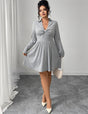 Women Plus Size Grey Polo Collar Knot-Front A-Line Dress