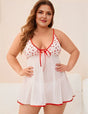 Women Plus Size Heart Print Mesh Babydoll - white -red heart / XS-S(110-140lbs) is backordered and will ship as soon as it is back in stock.