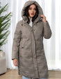Women Plus Size Long Hooded Padded Coat - Khaki / 1XL is backordered and will ship as soon as it is back in stock.