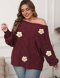 Women Plus Size Off-Shoulder Batwing Sleeve Pullover Sweater - Burgundy / 0XL is backordered and will ship as soon as it is back in stock.