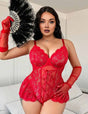 Women Plus Size Red Floral Lace Sheer Teddy