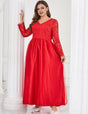 Women Plus Size Red Lace Long Formal Wedding Evening Dress is part of the Plus Size Dress.Flowing from the waist, the airy mesh skirt creates a soft, dreamy silhouette that moves gracefully with every step. Whether walking down the aisle or making an entrance at your wedding party, this dress brings an unforgettable charm that flatters all plus-size body shapes.This gown is crafted for unforgettable moments. From intimate weddings to newlywed celebrations, it strikes the perfect balance between sophistication and gentle glamour. The red color symbolizes love, passion, and good fortune—ideal for brides who want something meaningful, stylish, and unique.