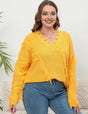 Women Plus Size V-Neck Tassel Patchwork Pullover Sweater